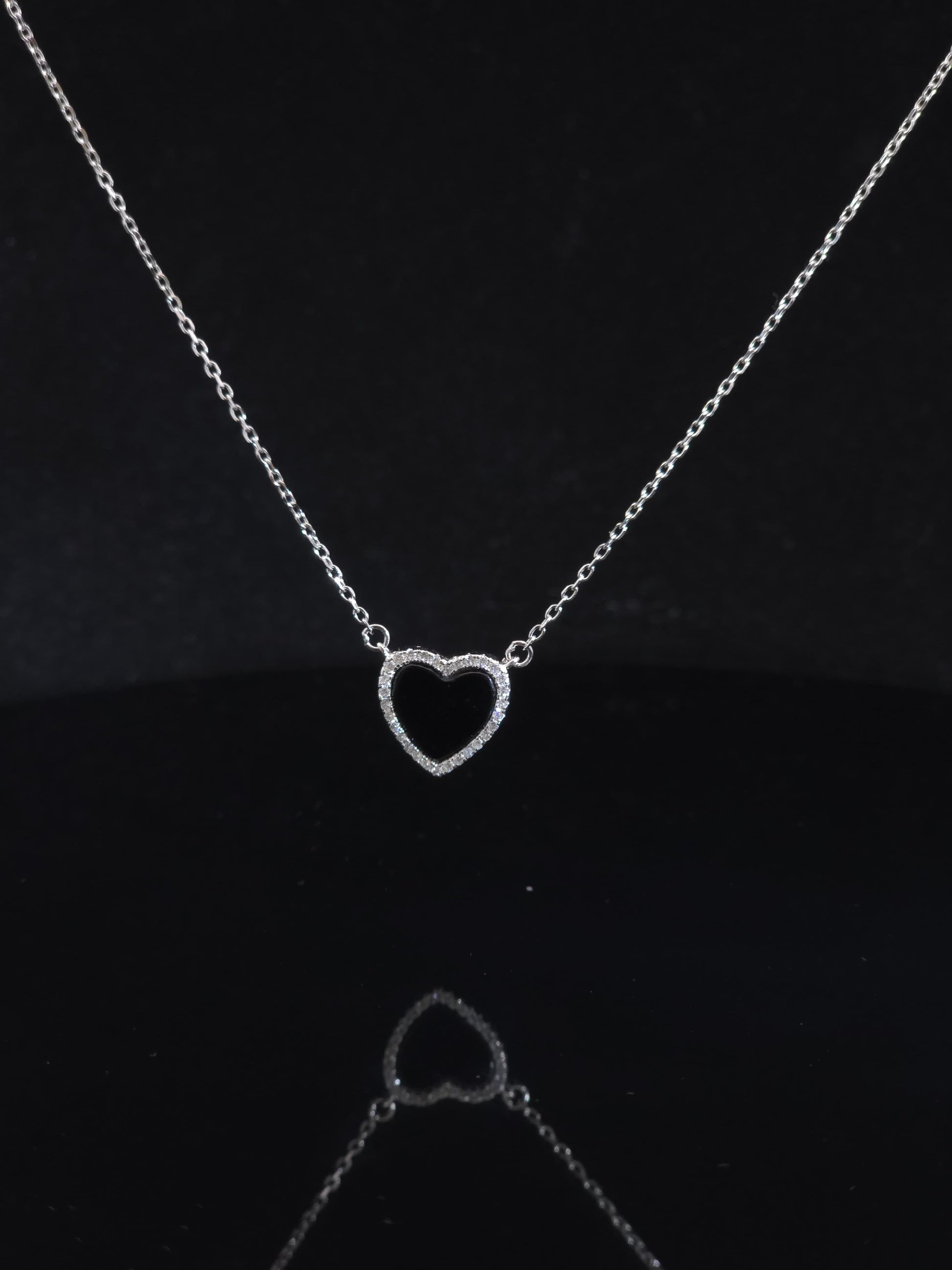 A rhodium-plated necklace featuring a radiant red heart surrounded by sparkling accents. Inspired by timeless royal elegance.